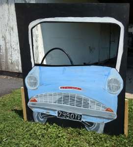 We ate lunch in the shade there, surrounded by House banners. I spied a Ford Anglia lurking nearby – were the Weasleys about?
