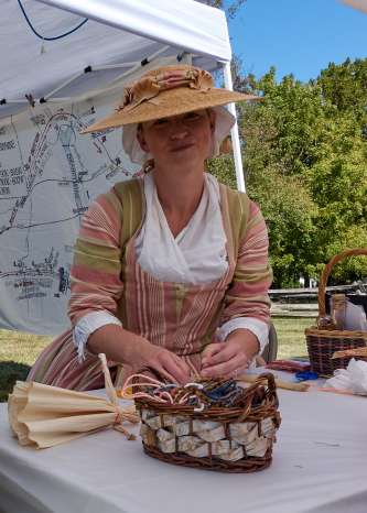 She had a warm accent that sounded like it came from the British Isles – but then, many of the Colonials did, too! She talked of how she supported her husband and showed us the gear she carried. Sometimes in the heat of summer, a soldier discarded his hot and heavy blanket, but if a woman traveled with a soldier, she kept hold of that blanket!